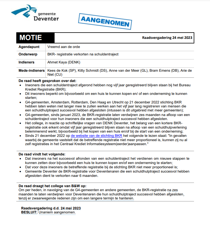 Motie DENK: BKR-registratie verkorten na schuldentraject 1 okt Geschreven door Marouan Berkaoui Marouan Berkaoui